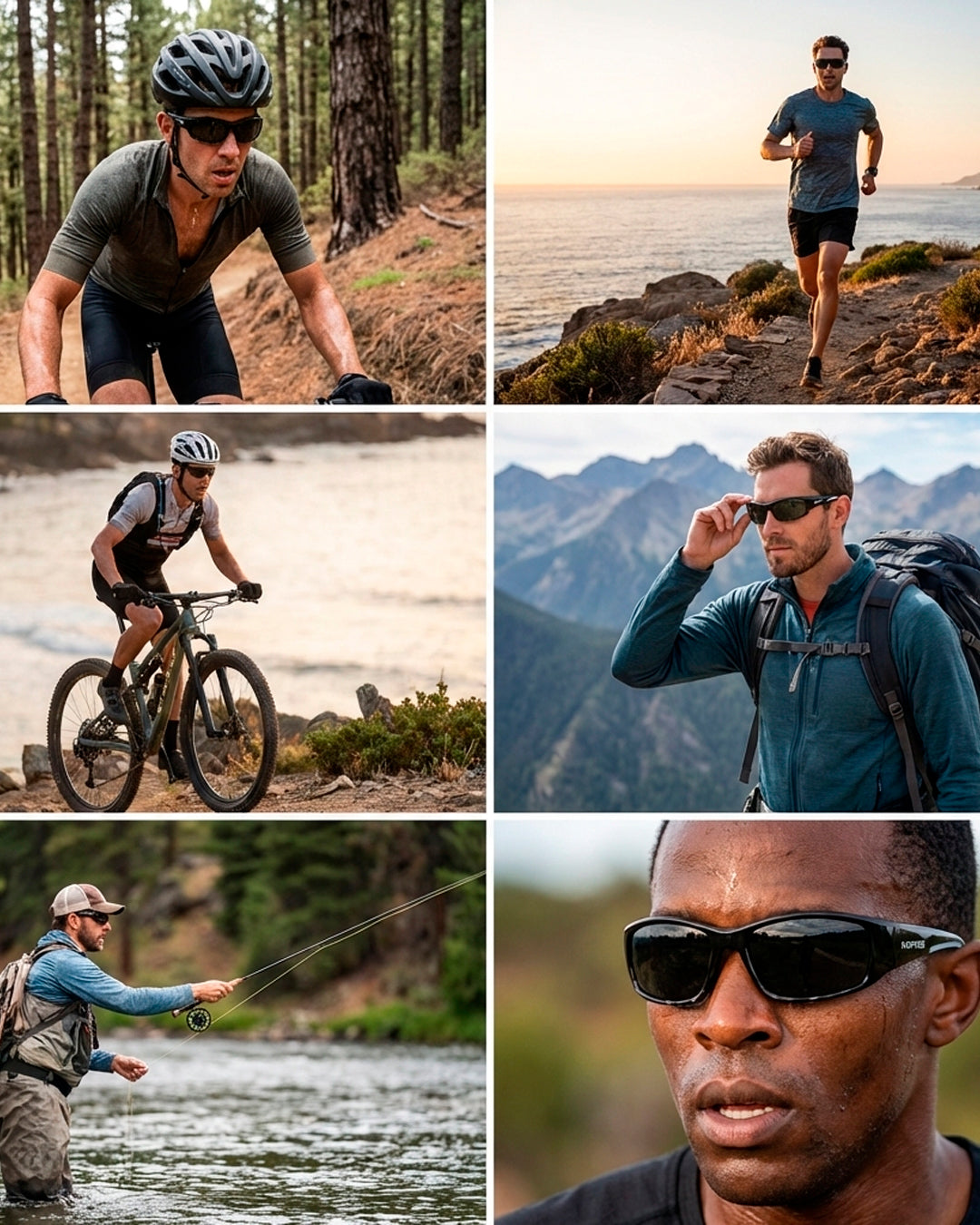 Projetado para ciclismo, corrida, direção, pesca, trilhas e esportes ao ar livre, adaptando-se a diferentes cenários e níveis de intensidade.