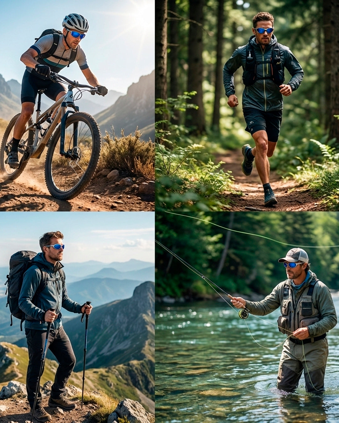 Indicado para ciclismo, corrida, direção, pesca, trilhas e esportes ao ar livre, adaptando-se a diferentes ambientes com maior durabilidade e controle.