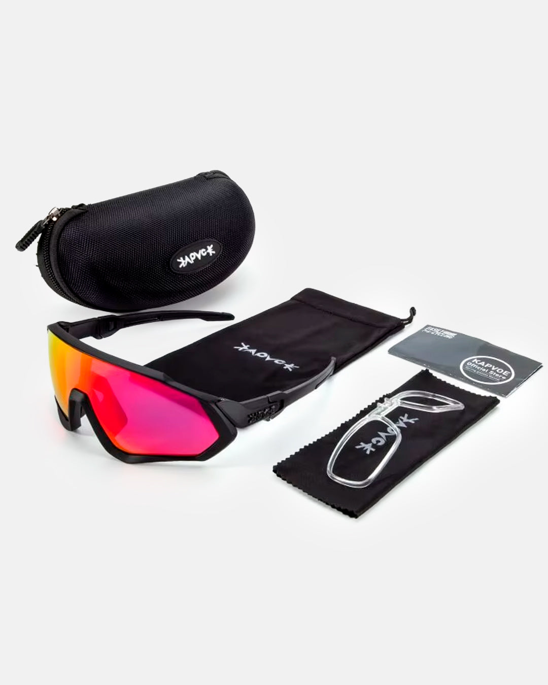 Projetado para esportes de ritmo intenso, o KAPVOE SHIELD mantém estabilidade no rosto mesmo sob vento, impacto de ar e movimento constante.