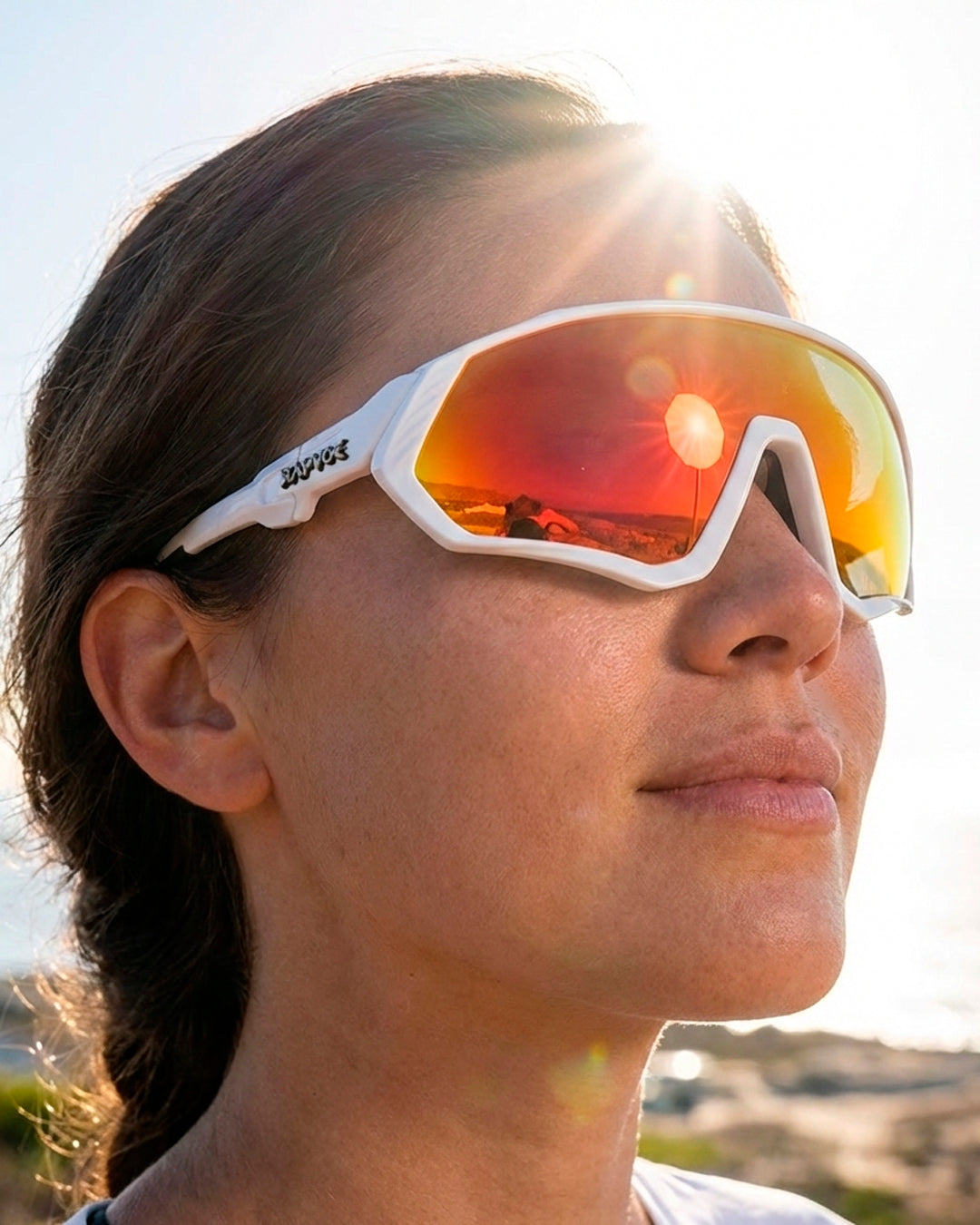 Projetado para esportes de ritmo intenso, o KAPVOE SHIELD mantém estabilidade no rosto mesmo sob vento, impacto de ar e movimento constante.