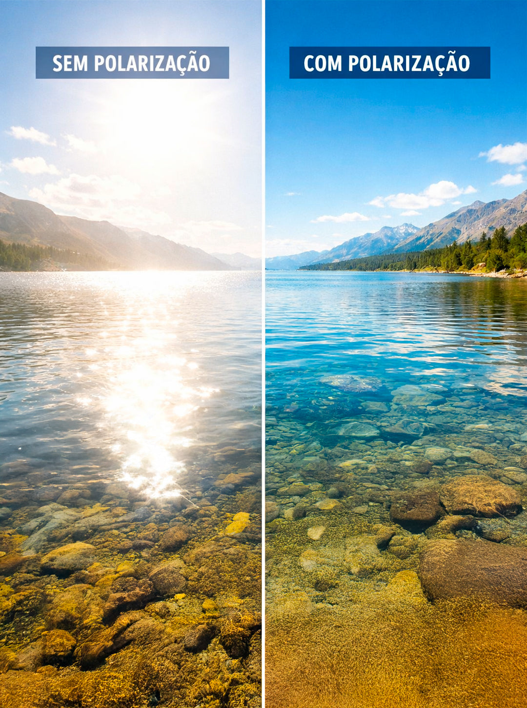 As lentes polarizadas com tratamento óptico reduzem reflexos intensos e melhoram a definição visual, oferecendo leitura mais precisa do ambiente em diferentes condições de luz.