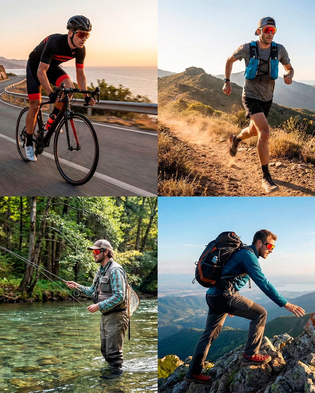 Indicado para ciclismo, corrida, direção, pesca, trilhas e esportes outdoor, adaptando-se a diferentes cenários, ritmos e estilos de uso.